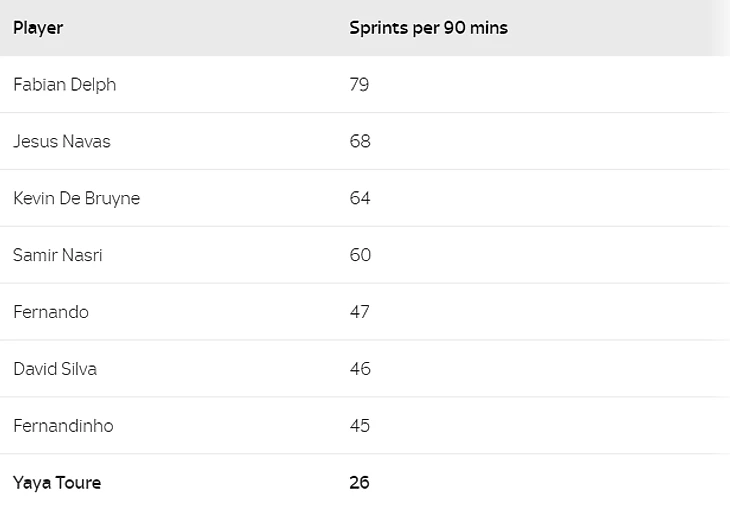 Ожидаемо возникли проблемы у Яя Туре. Гвардиола не включил его в заявку на первый матч АПЛ и квалификацию ЛЧ, пока лишь ограничившись комментарием, что не хочет нагружать полузащитника трудным выездом без гарантии, что тот сыграет. Отношения ивуарийца с работой без мяча много раз разбирались в блоге и красноречиво подчеркиваются даже голыми цифрами: