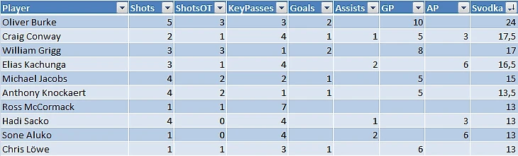 * GP (goal points), AP (assist points) - баллы, начисляемые за результативные действия. Svodka - общая сводка атакующих действий, вычисляемых по формуле, которую я сделал по своему усмотрению