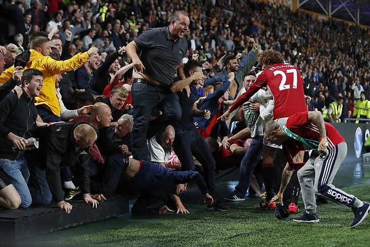 Пока все праздновали гол Рэшфорда, джентльмен Феллайни помог выбраться женщине, которую зажало рекламным щитом.