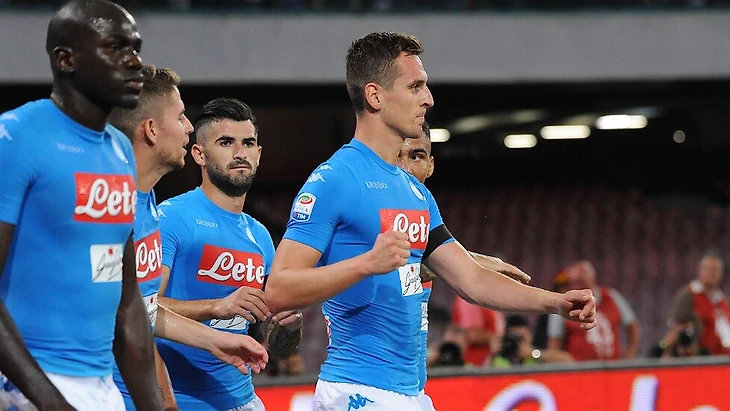 Первый тайм подарил болельщикам Серии А прошлогодний "Наполи" во всех его ипостасях. Уравновешенная возвращением Жоржиньо средняя линия позволяла Аллану больше участвовать в атаках, скорости передвижения мяча в которых он придавал темп. В полной мере получил свободу Дрис Мертенс, постепенно отделывающийся от образа игрока-замены. Поучаствовав практически во всех атаках "партенопейцев" в первом тайме, бельгиец, тем не менее, отошел на второй план уже на 33-й минуте. Милик, привыкший еще в "Аяксе" играть первую скрипку, весьма недурно вписался в построения Сарри, что доказал дублем в своем по сути первом полноценном тайме в новой команде. То, что "Милан" так легко сдастся, не верил почти никто.