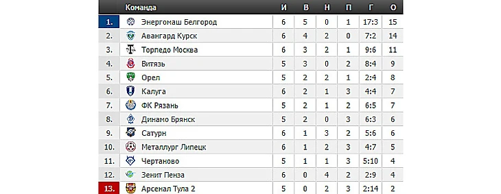 После матчей 6-го тура в группе «Центр» второго дивизиона сменился лидер. На первую строчку таблицы поднялся белгородский «Энергомаш».