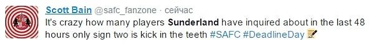 13:05 И снова, как пару лет назад, я освободил денек ради того, чтоб максимально подробно и усердно следить за перипетиями "Сандерленда" в последний день перед закрытием трансферного окна. И в этот раз, надо сказать, это будет ещё интереснее, чем обычно, поскольку на "котов" практически вся английская пресса дружно повесила ярлык команды, которая должна активнее всех проявить себя сегодня на рынке. И это, в принципе, правда - "мэкемс" сейчас в активном поиске ни одного, ни двух, а сразу четырех-пяти игроков. Но, обо всём по порядку.