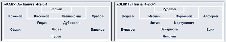«Калуга»: Чернов, Крючков, Лавлинский, Храпов, Кисенков, Дубровин, Родин, Лосев (Анохин, 53), Сёмин (Скворцов, 89), Баранов (Романюк, 81), Гуров (Петров, 83).