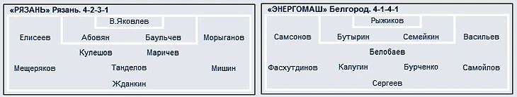 «Рязань»: В.Яковлев, Елисеев (Нехов, 90), Мишин (Журавлев, 46), Баульчев, Маричев (Лабзин, 35), Кулешов, Танделов (Б.Яковлев, 83), Жданкин, Морыганов, Мещеряков (Зайцев, 73), Абовян.