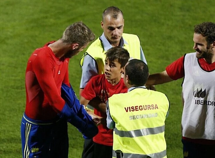Юный фанат пытается получить вратарский свитер Давида Де Хеа. Давид не отказал смелому парню.