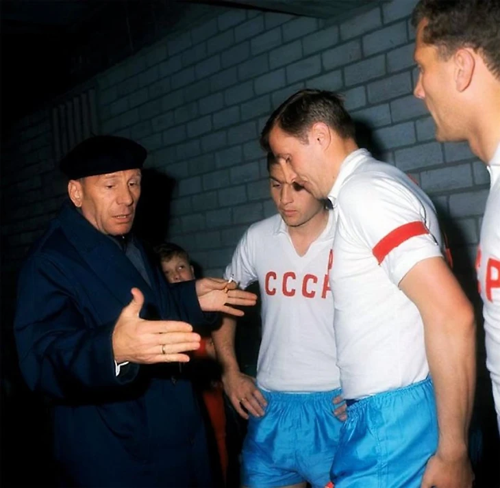 Николай Морозов объясняет советским футболистам, как играть против Северной Кореи.