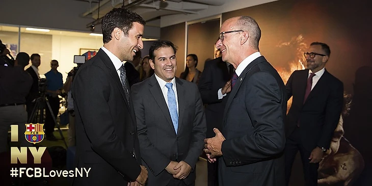 Рауль с вице-президентом «Барселоны» Кардонером на открытии офиса клуба в Нью-Йорке