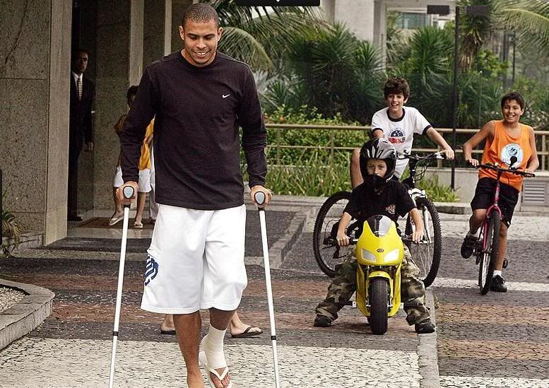 Травмы - настоящий бич карьеры Роналдо. На фото выше одна из тех, которую вполне можно поставить по значимости на третье место после первого и второго разрывов коленных связок. В сезоне 2005/2006 в гостевом матче с "Атлетико" он готов был сделать хет-трик, но судьба в очередной раз сыграла с ним злую шутку. К тому моменту он был в отличной физической и игровой форме, сезон раскручивался, у него было 7 голов (лучший на тот момент показатель), никакого лишнего веса и отличное настроение. Эта травма выбила его из колеи, в которую он так и не смог, на мой взгляд, вернуться по полной программе.