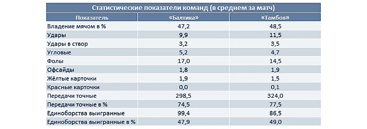 Коэффициенты линии на предстоящий поединок отдают символическое преимущество хозяевам поля. Кстати, это будет первый в истории матч «Балтики» с командой из Тамбова. Напомним, что сам «Тамбов» существует четвёртый сезон, а раньше город Тамбов в профессиональном футболе представляла команда с названием «Спартак». Однако калининградцы, сыграв в своей истории с одиннадцатью клубами, в названиях которых фигурировало слово «Спартак», на «Спартак» из Тамбова не попадали ни разу.