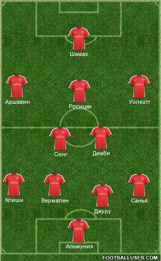"Арсенал": Альмуния - Санья, Джуру, Вермален, Клиши - Сонг, Диаби, Росицки - Уолкотт, Шамах, Аршавин.