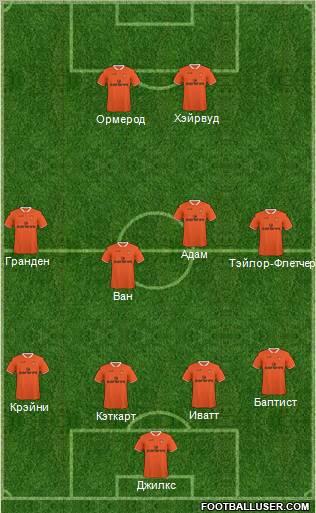 "Блэкпул": Джилкс - Баптист, Иватт, Кэткарт, Крэйни - Тэйлор-Флетчер, Адам, Ван, Гранден - Ормерод, Хэйрвуд.