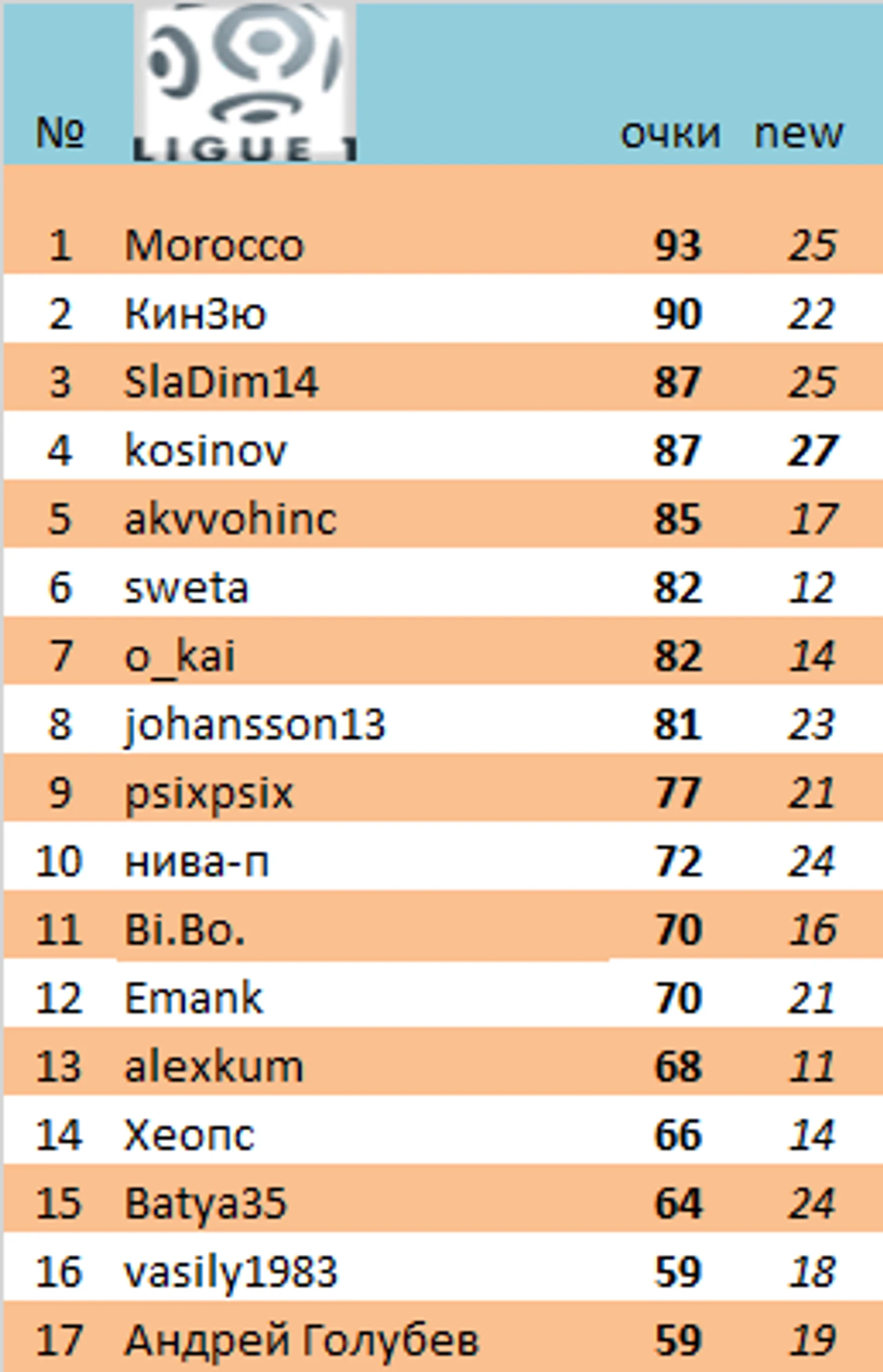 Во Франции всех в очереди растолкал kosinov (27 очков)
