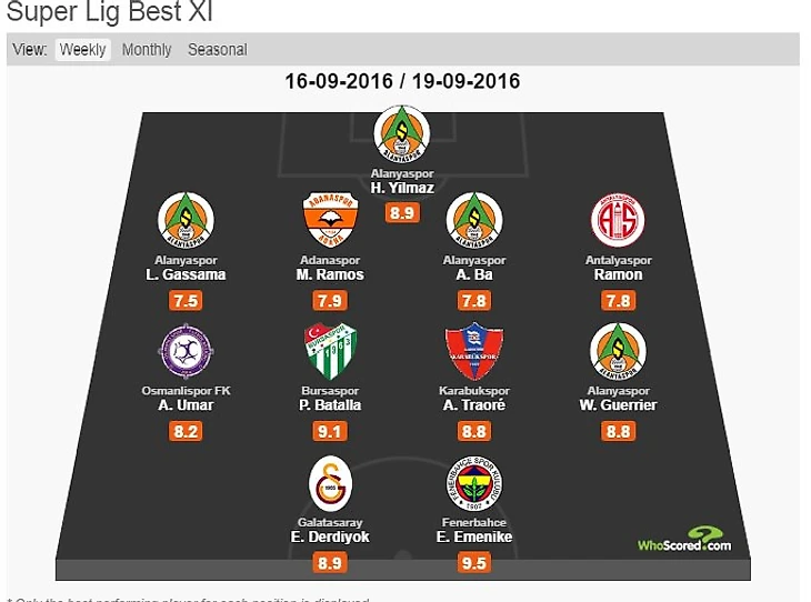 Штормит «Трабзонспор». На этот раз подопечные Эрсуна Янала были разгромлены в Аланье. Команда Вагнера Лава катком прошлась по «черноморцам», бразилец хоть сам и не забил, но был весьма полезен в атаке. Героем же встречи стал Эмре Акбаба, забивший гол и ассистировавший гаитянину Герье.