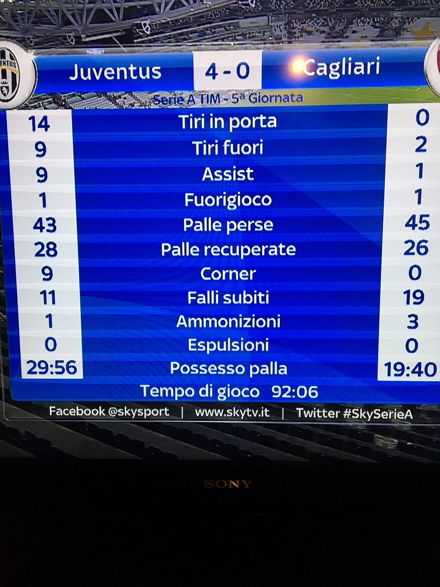 В концовке матча Марио Манджукич получил возможность поставить восклицательный знак в этой встрече, игроки обороны «Кальяри» неудачно исполнили искусственный офсайд, хорват, будучи в штрафной, пробил в ближний угол, но мяч пролетел мимо ближнего угла. Через минуту другой хорват, Марко Пьяца получит свой шанс забить дебютный мяч в черно-белой футболке, но не смог воспользоваться прекрасной передачей из глубины поля от Эрнанеса, пробив не только выше вышедшего ему навстречу Марко Сторари, но и выше ворот. Больше ничего примечательного, кроме песни имени Симоне Падоин, не наблюдалось.