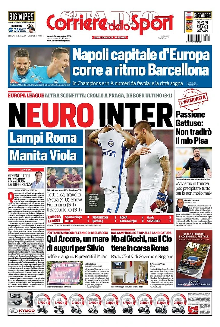 «Еврокрах «Интера». Заголовки Gazzetta, TuttoSport и Corriere за 30 сентября