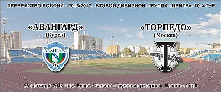 25 сентября московское «Торпедо» сыграет гостевой матч с лидером группы «Центр» второго дивизиона курским «Авангардом». Команды разделяют в таблице девять очков, но чёрно-белые провели на одну игру меньше.
