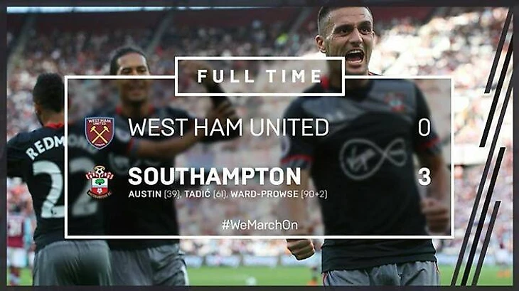 Команды доигрывали этот матч уже при полу пустых трибунах. Вест Хэм своих болельщиков в этом сезоне не радует. Саутгемптон напротив, похоже нашел свою игру! И эта игра очень приятна для глаз!