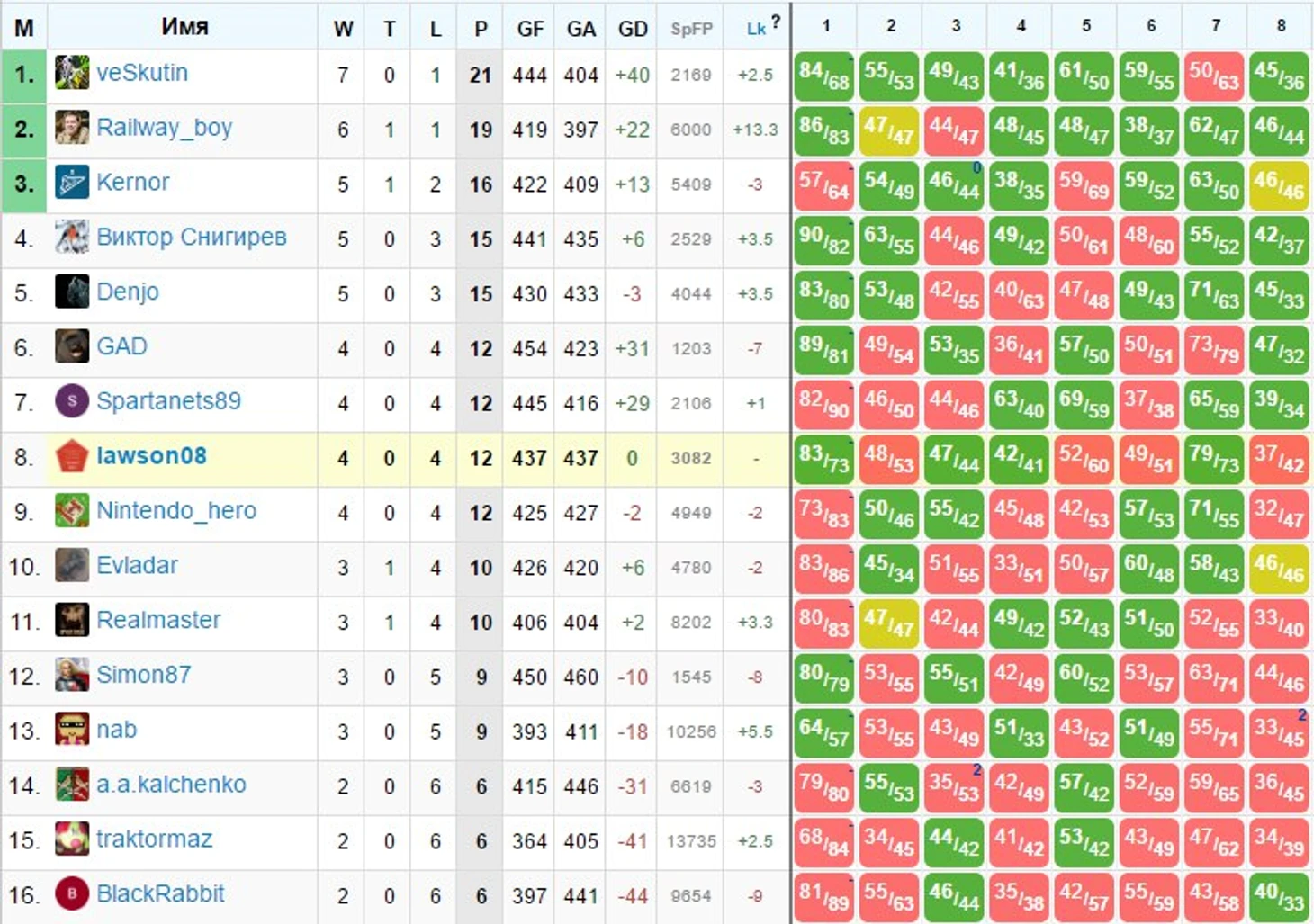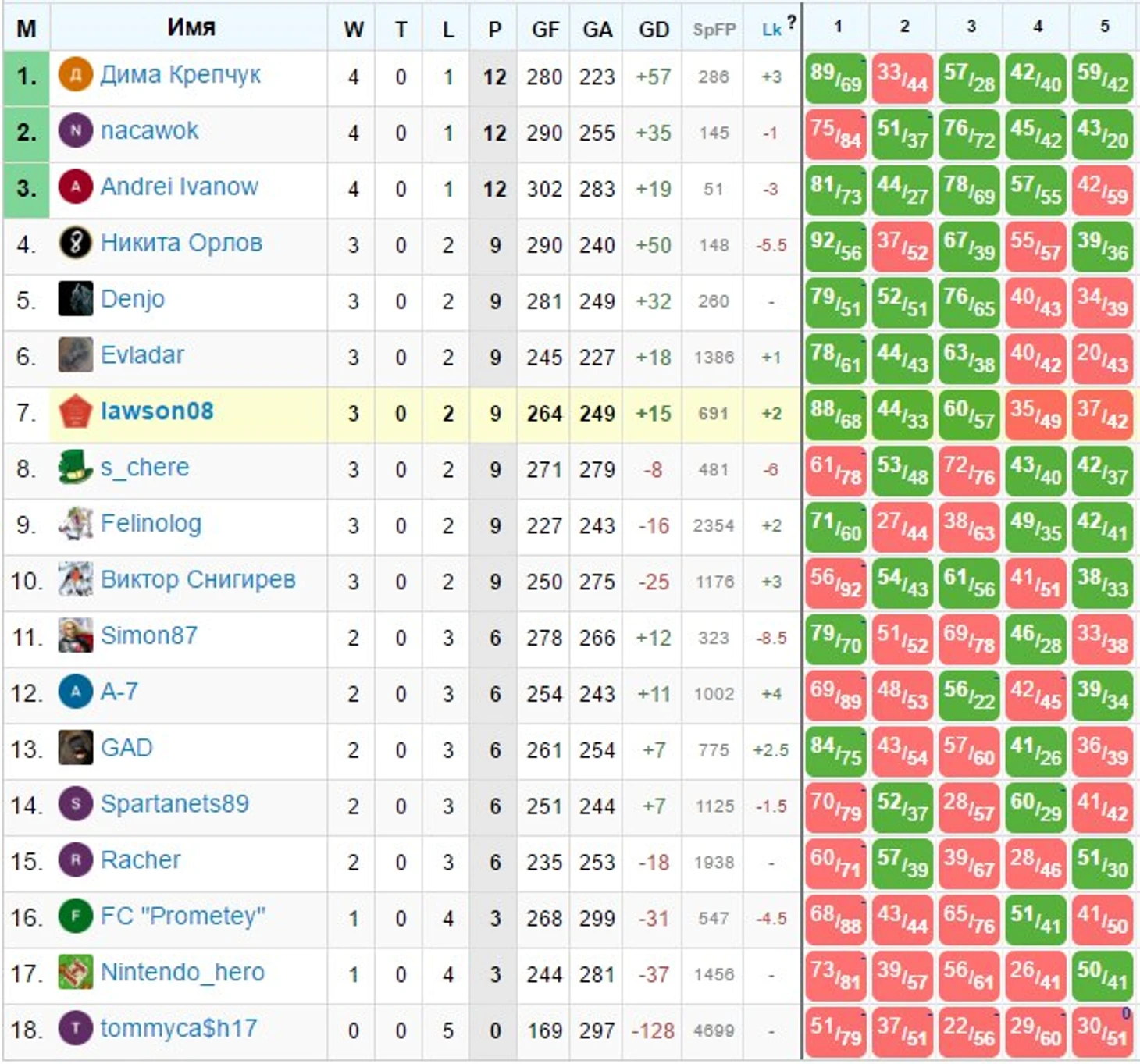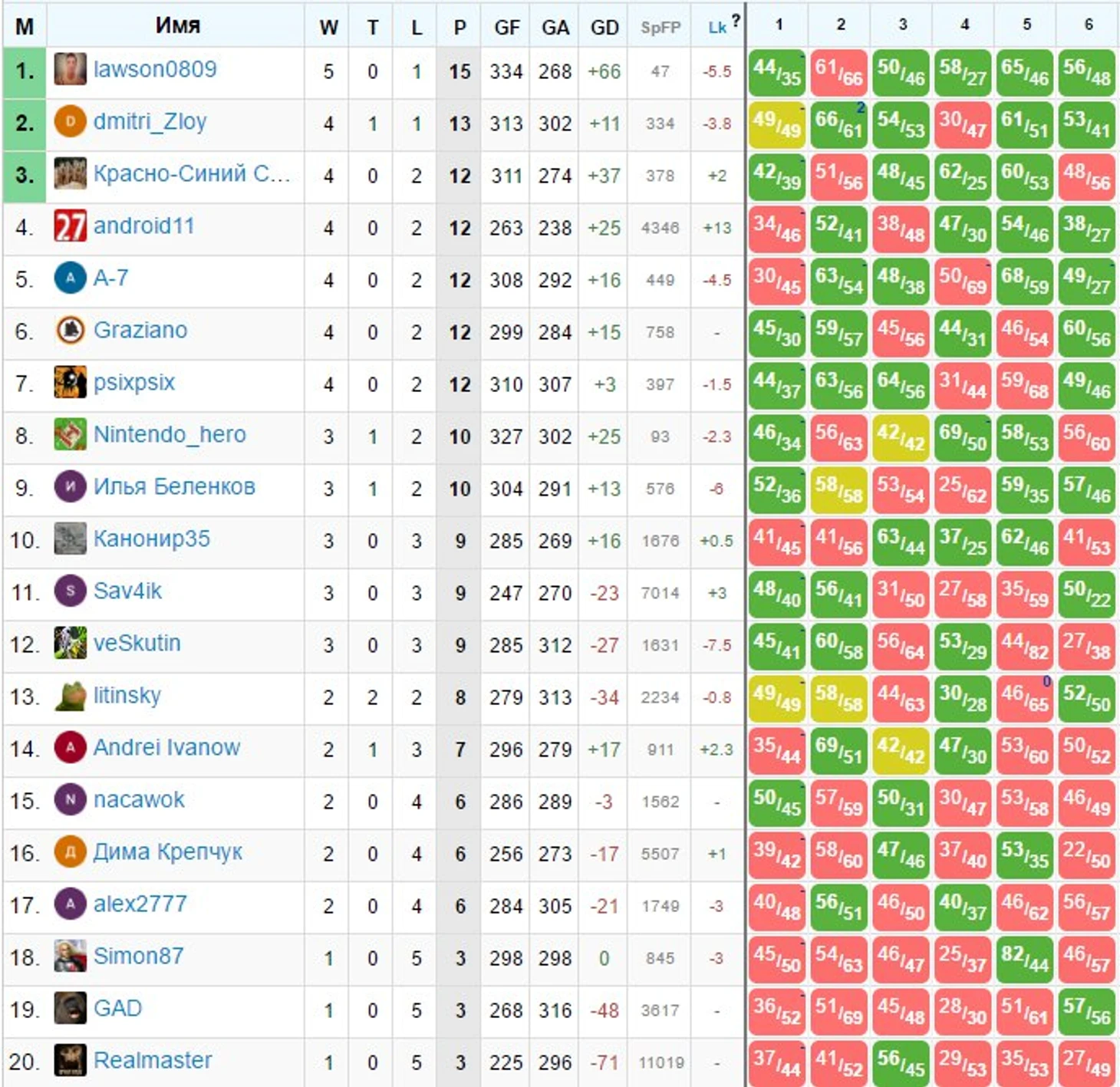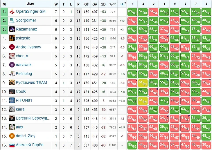 Лучший игрок (на данный момент): DelS (7 побед = 21 очко)