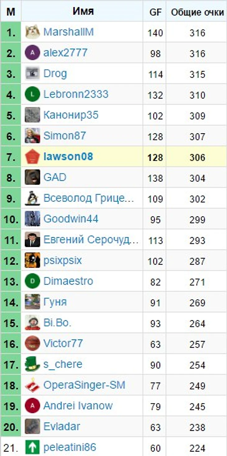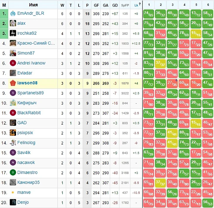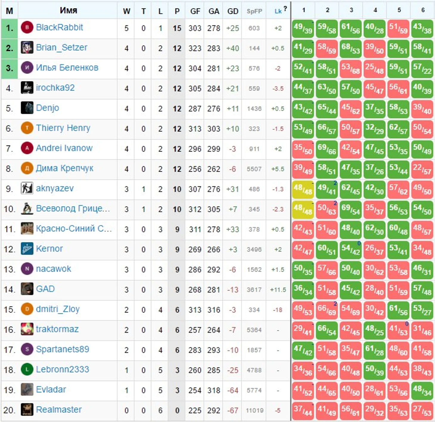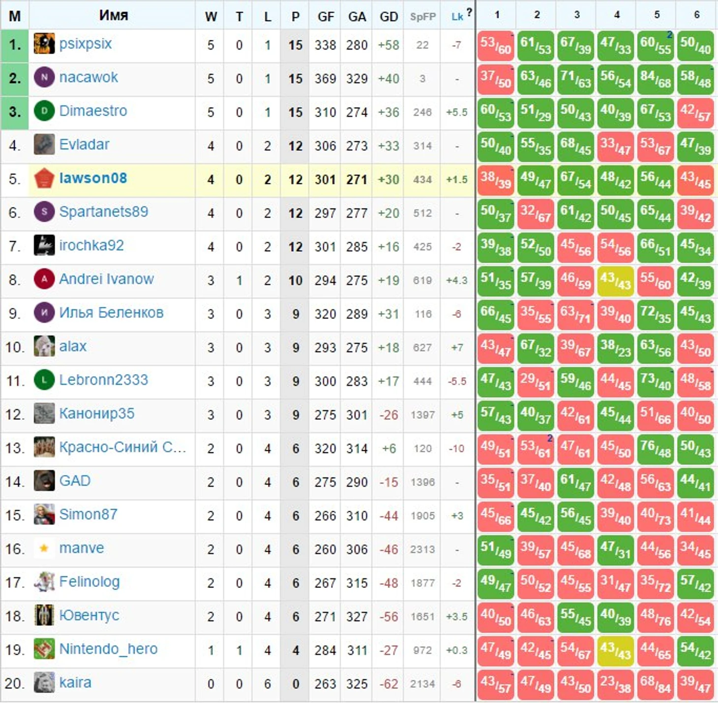 Лучший игрок (на данный момент): DelS (7 побед = 21 очко)