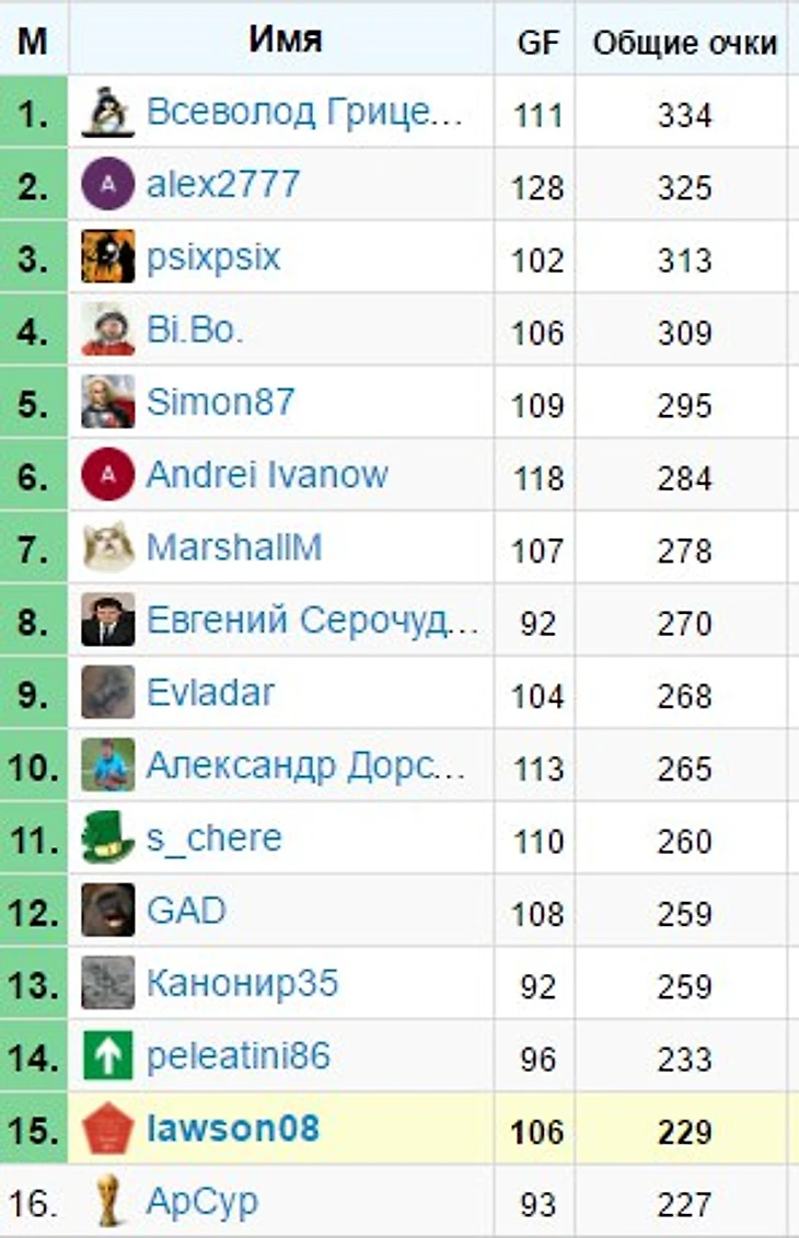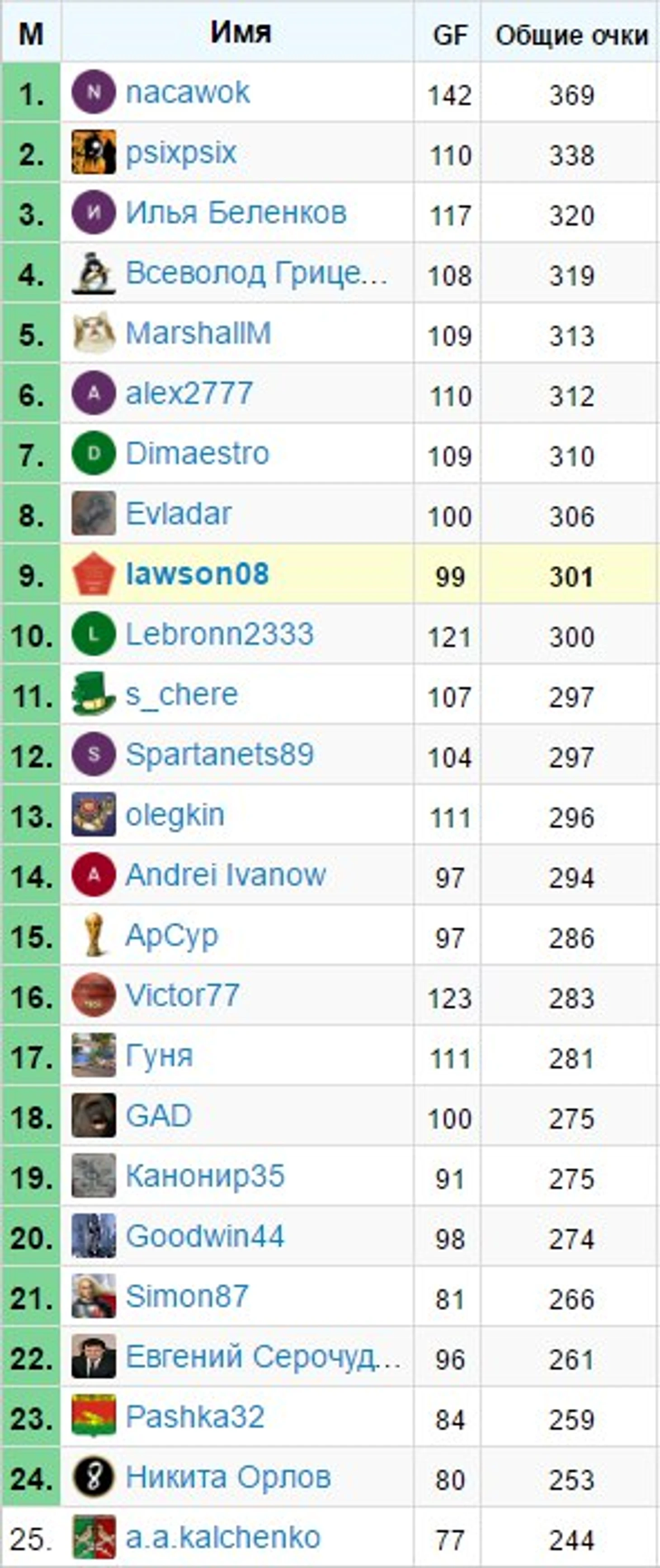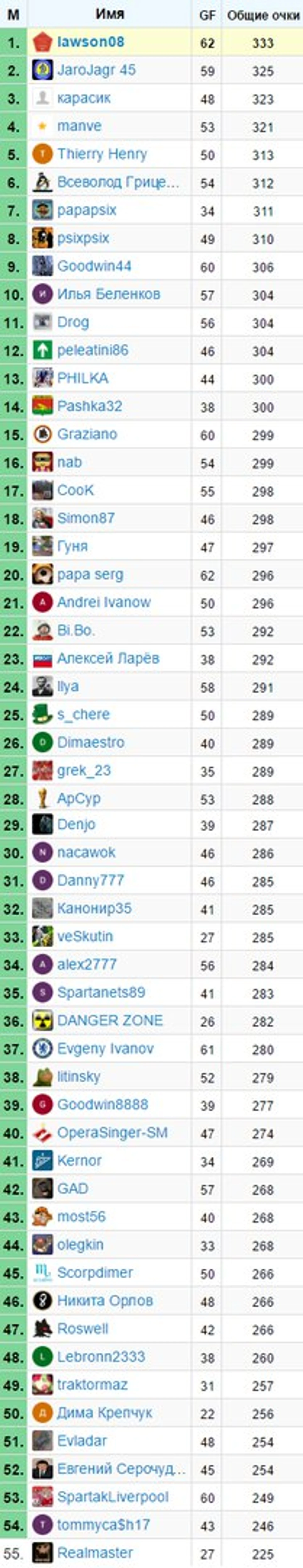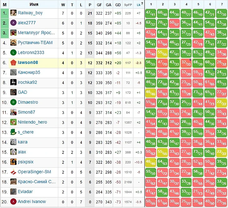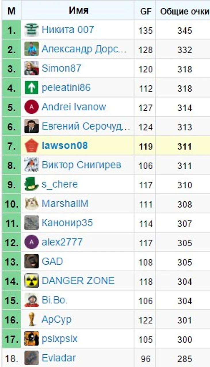 Лучший игрок (на данный момент): DelS (7 побед = 21 очко)