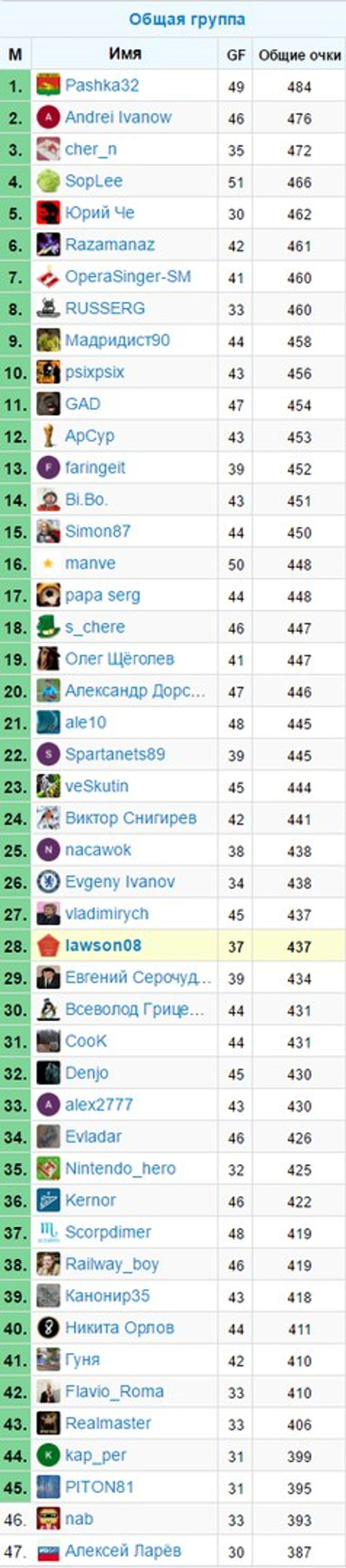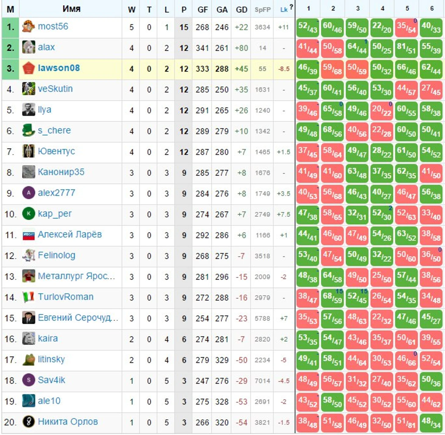 - после 18-го тура и в последующие туры из группы выбывают по 2 худших игрока: