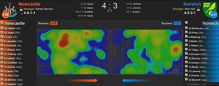 Следует отметить какое-то дикое упрямство Рафаэля Бенитеса в выборе стартового состава. Возможно, когда-нибудь мы увидим Митровича вместо Дьяме в основе, но это, как говорится, совсем другая история. Рафа, видимо, наотрез отвергает вариант с двумя форвардами в старте, и Митро опять вынужден был довольствоваться какими-то 25-ю минутами игрового времени. Также вызывает сомнения выбор голкипера на игру. Карл Дарлоу был великолепен в кубковой встрече с «волками», однако свою битву за место под солнцем с Матцем Селсом, за которым, кстати, не было замечено серьезных оплошностей, он должен был начать с менее статусного матча. Как итог, Дарлоу пропустил все более или менее опасные удары в исполнении игроков «Норвича». В центре поля вместо Айзека Хейдена вышел Джек Колбэк, что выглядит вполне логичным, так как Хейден зачастую тормозил игру «сорок» в атаке в последних матчах, и Шелви приходилось действовать практически в одиночку.