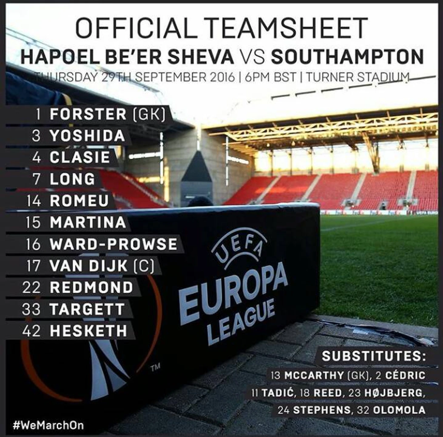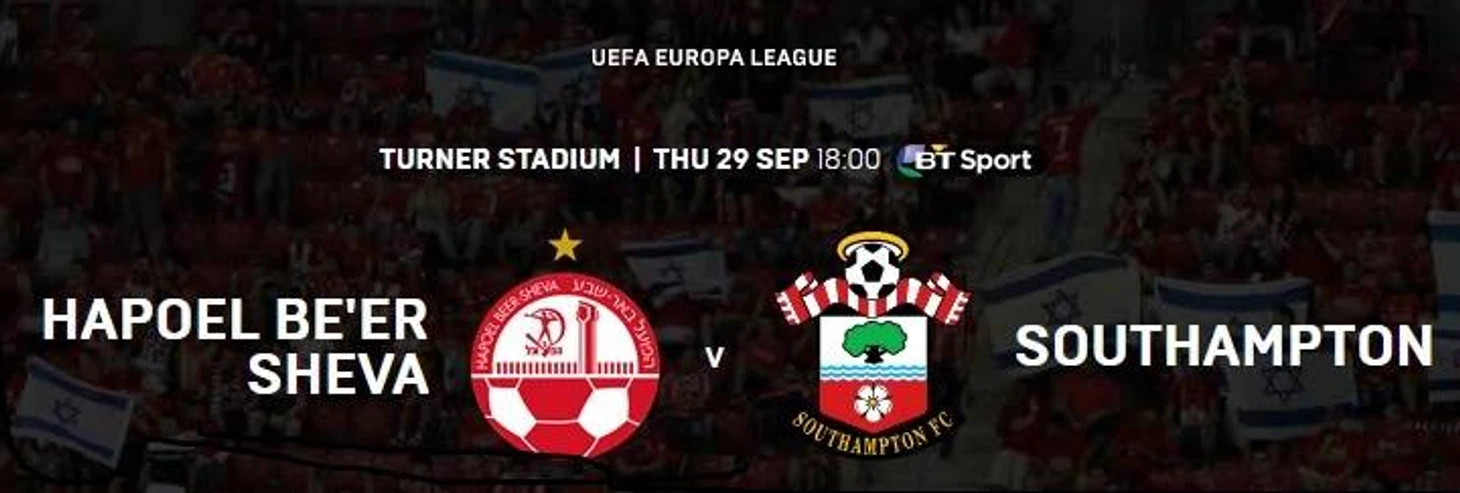 Сегодня нас ждет первый выездной матч Саутгемптона в Лиге Европы. Соперник - израильская команда Хапоэль Беер Шева, сотворившая сенсацию в первом туре, обыграв Интер в Милане.