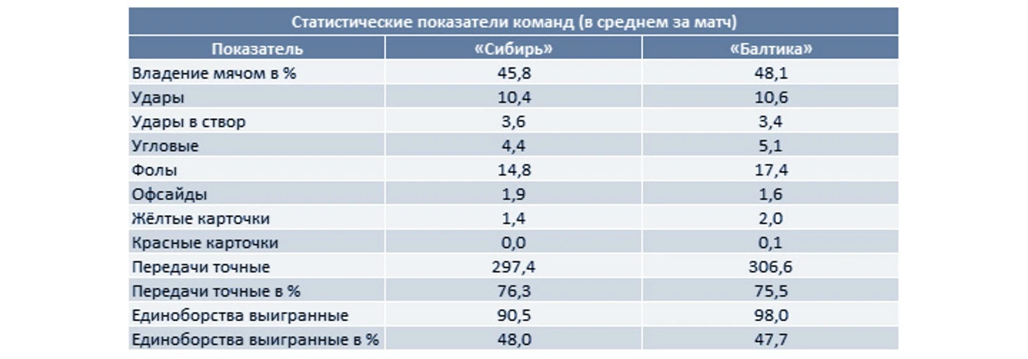 Лишь в одном поединке нынешнего сезона новосибирцы забили более одного мяча и лишь в двух более одного мяча пропустили. Шесть из 14-ти проведённых новосибирцами матчей первенства ФНЛ закончились с тоталом меньше 1.5, 11 – с тоталом меньше 2.5. Последние восемь матчей дома «Сибирь» сыграла с тоталом меньше 2.5.