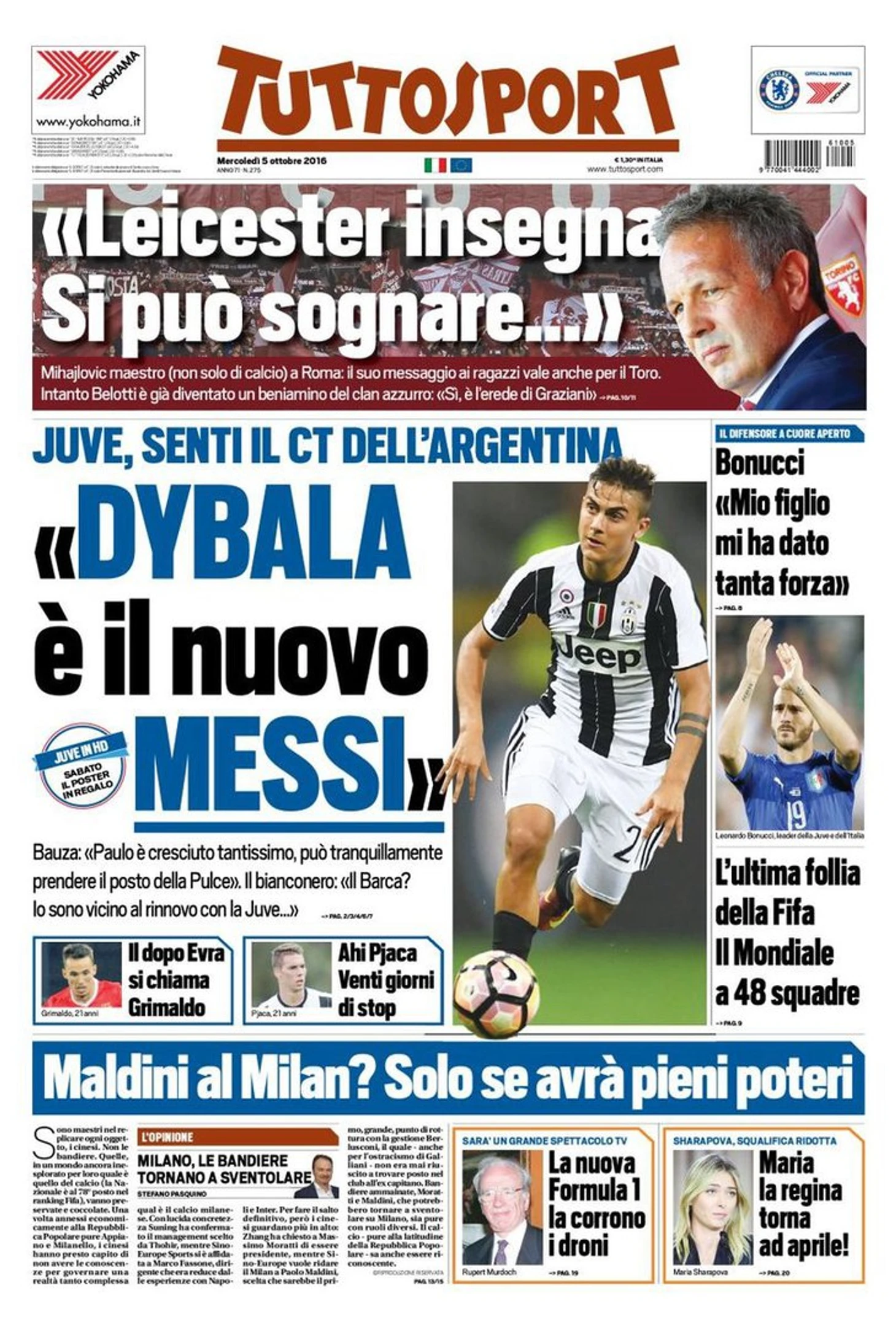 «Дибала – это новый Месси». Заголовки Gazzetta, TuttoSport и Corriere за 5 октября