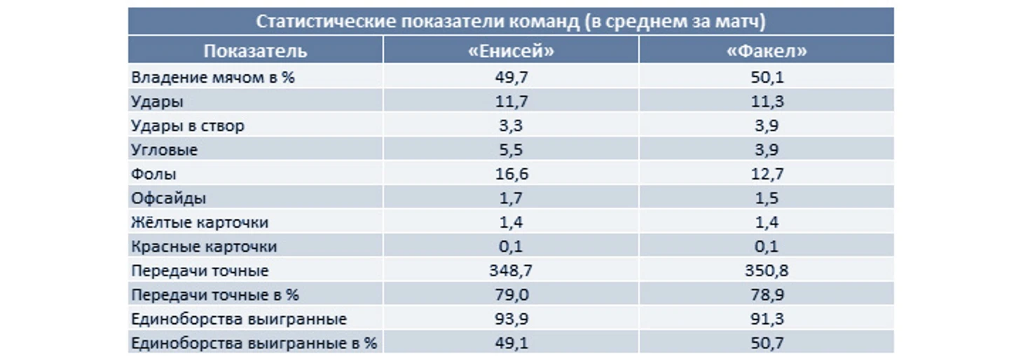 Лишь в одном поединке нынешнего сезона новосибирцы забили более одного мяча и лишь в двух более одного мяча пропустили. Шесть из 15-ти проведённых новосибирцами матчей первенства ФНЛ закончились с тоталом меньше 1.5, 12 – с тоталом меньше 2.5.