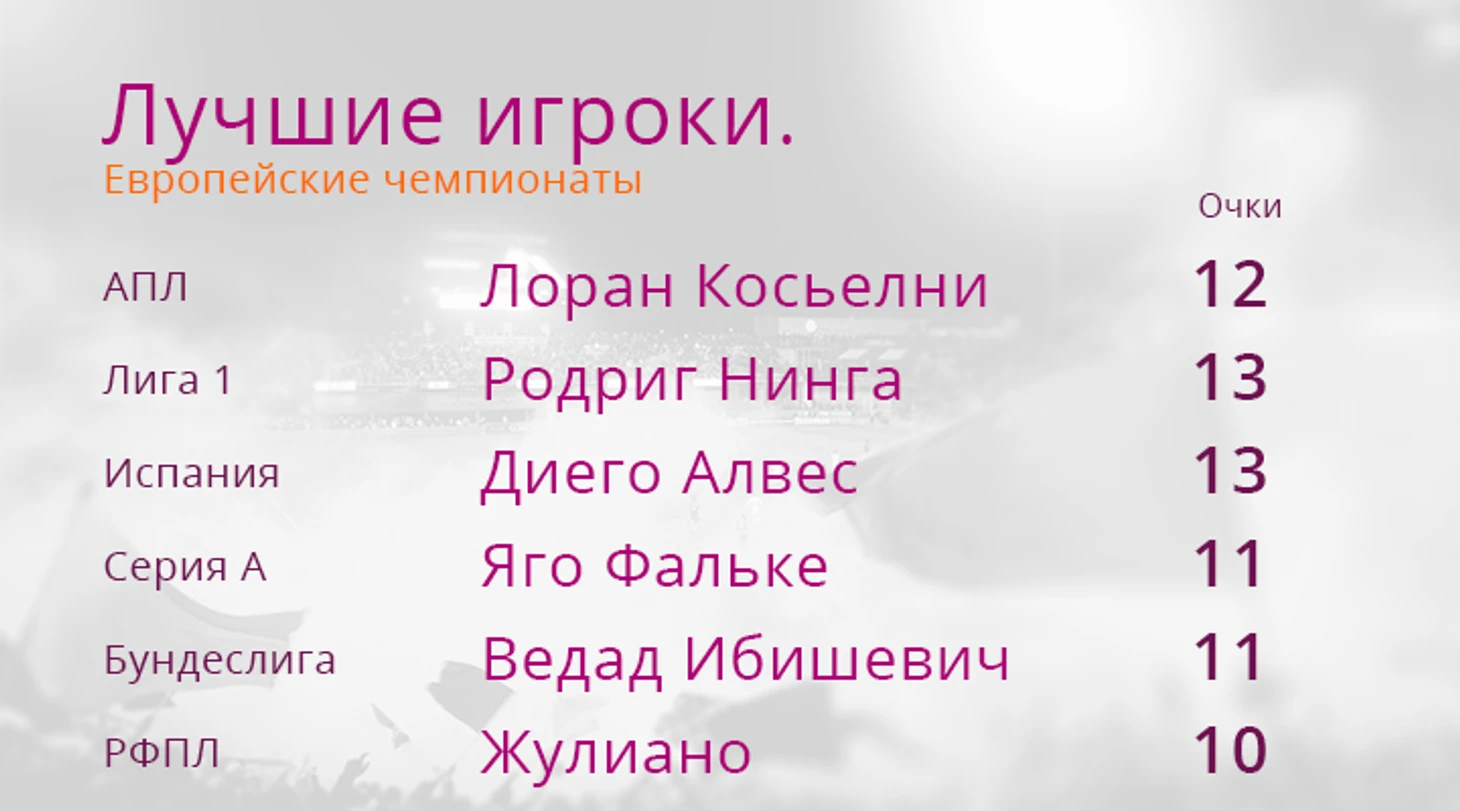 Не обошли мы вниманием и популярные европейские чемпионаты, где «звезды» на этот раз сияли не так ярко: