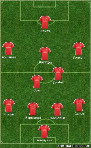 "Арсенал": Альмуния - Санья, Косьелни, Вермален, Клиши - Сонг, Диаби, Росицки - Уолкотт, Шамах, Аршавин.