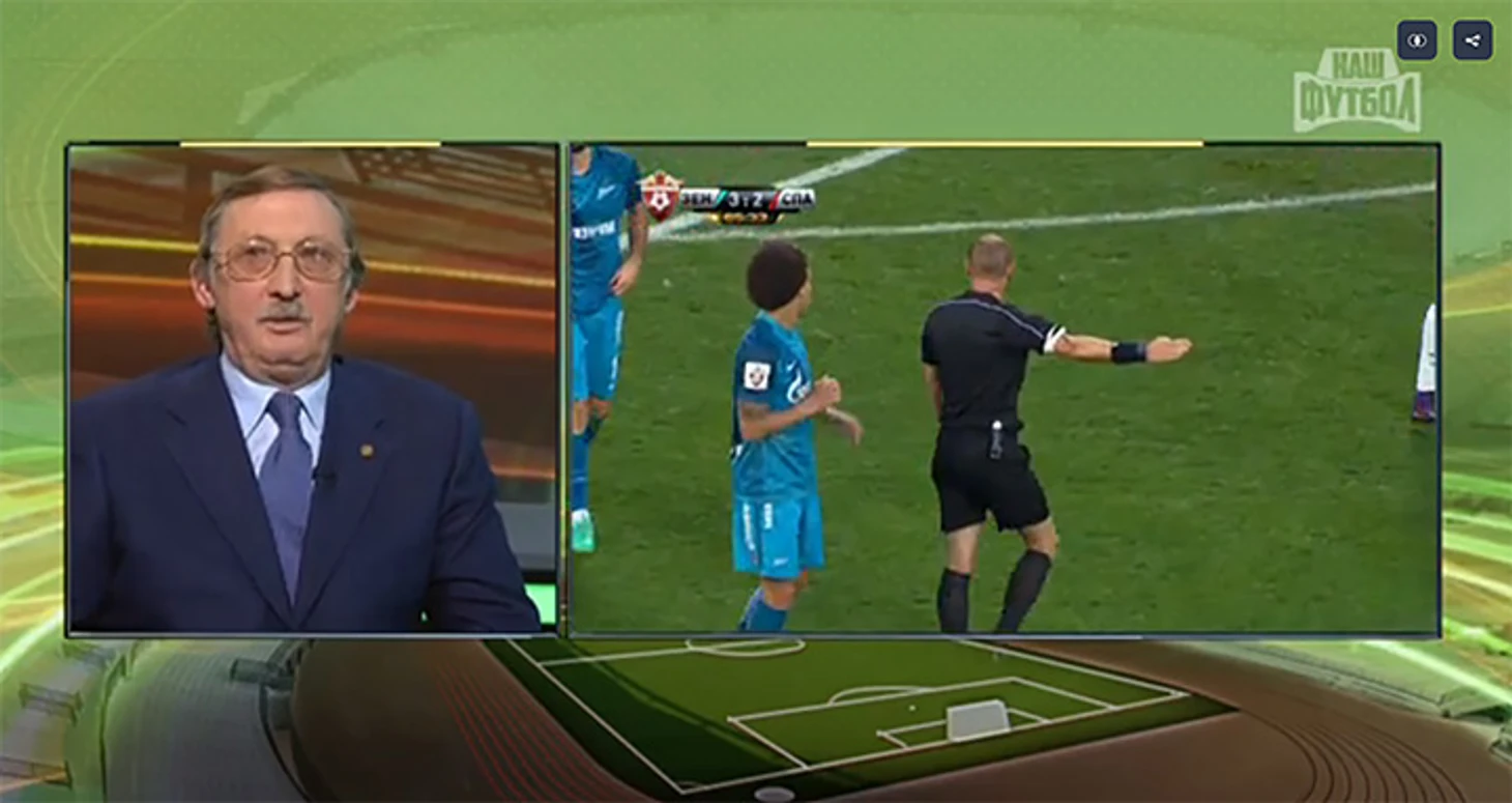 Через 10 минут после начала эфира Батурин и Спирин все-таки добрались до разбора спорных эпизодов игры «Зенит» – «Спартак». Конечно, обсуждение началось с момента возможного фола Кришито на Промесе в концовке матча. И Батурин, и Спирин однозначно высказались в пользу неправильности решения Сергея Иванова – он был обязан показать итальянцу вторую желтую карточку и назначить штрафной в пользу «Спартака». Казалось бы, больше и обсуждать в конкретном моменте нечего, но Спирин добавляет к сказанному всего одно предложение: