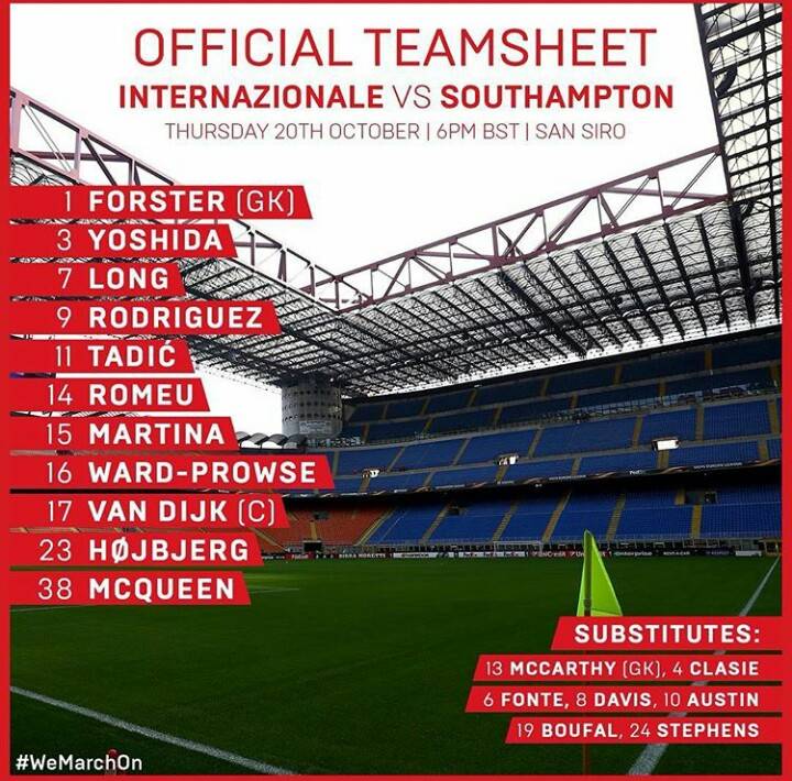 Сегодня Саутгемптон сыграет матч Лиги Европы против миланского Интера на легендарном стадионе Сан Сиро!