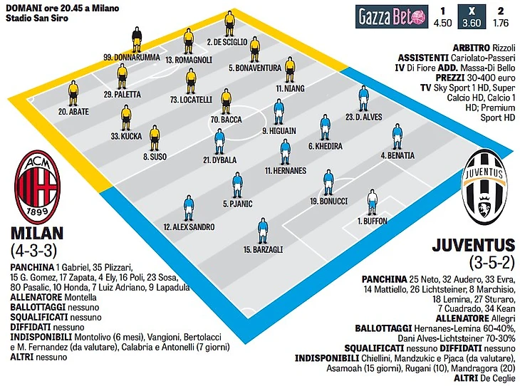 Ориентировочные составы (La Gazzetta Dello Sport):