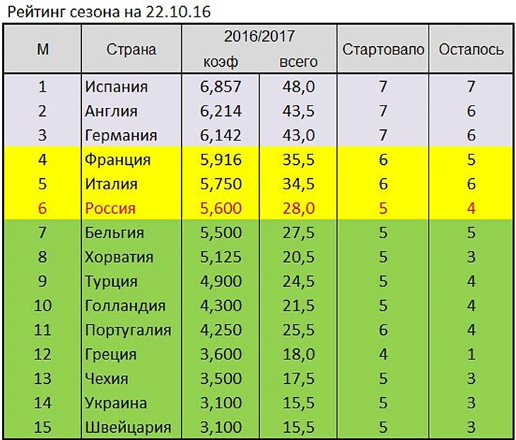 Заметьте, португальцы в таком рейтинге пока не входят даже в первую десятку! И это серьезный факт в пользу мнения о том, что не мы отвоевали шестую строчку в этом сезоне, а нам её пока уступают.
