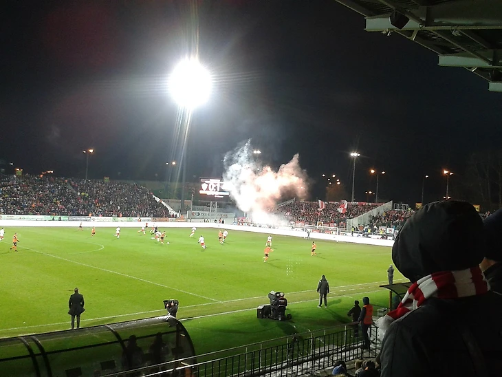 Традиционные очереди при входе на сектор уже не удивляют. "Расстегните, пожалуйста, куртку" — просят сотрудники охраны. Впервые столкнулась с таким досмотром при входе на обычный центральный сектор. На улице всё же далеко не май, чтобы чувствовать себя комфортно с расстёгнутой курткой даже несколько секунд. После досмотра куртки наконец-то пропустили на стадион, забыв проверить содержимое сумки и пакета. В свою очередь, я забыла о том, что в пакете лежит начатая бутылка воды.