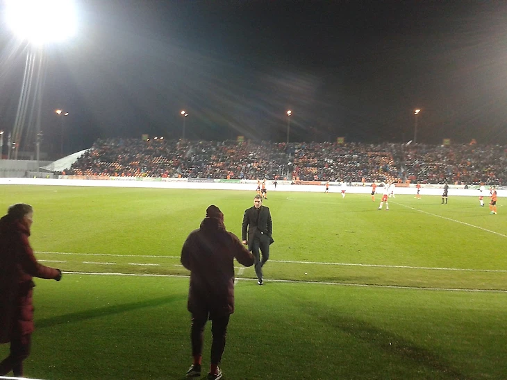 Тепло одет и тренер Урала Вадим Скрипченко, чего не скажешь о его коллеге по тренерскому цеху. Массимо Каррера бросил вызов суровой уральской погоде и вышел на матч в одном костюме. Периодически потирая ладони от холода во время первого тайма, итальянский тренер не спешит утепляться и только к концу первого тайма надевает лёгкое пальто. "Во даёт" — удивляются укутавшись в плед болельщики Урала.