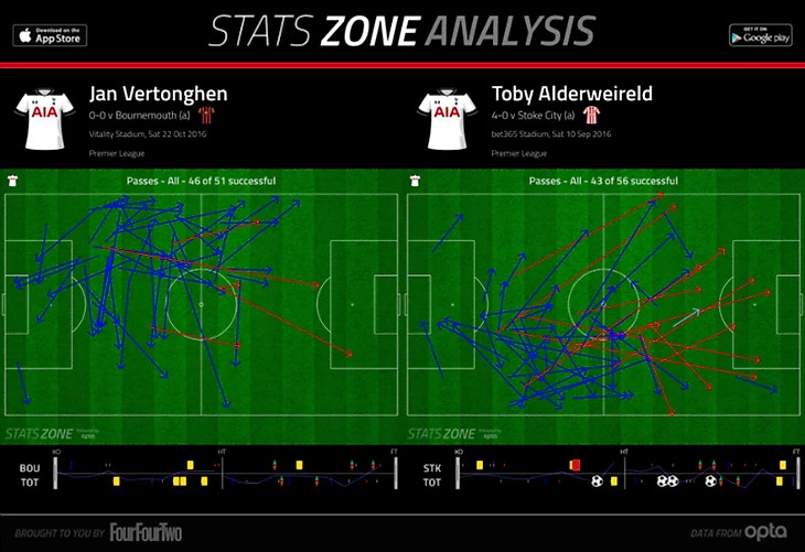 У Алдервейрелда есть специфические данные защитника, которые жизненно важны, а баланс его связки с Вертонгеном в буквальном оборонительном смысле лежит в основе восхитительных показателей его команды в защите. Только в случае его отсутствия проявляется то, насколько огромно влияние Тоби - его вариативность передач фундаментально важна для темпа и разнообразия игры “Тоттенхэма”; будь то его холодный темперамент или впечатляющий диапазон способностей, он, кажется, привносит в команду чувство огранизации и спокойствия. Это, может быть, неосязаемо, но необходимо.