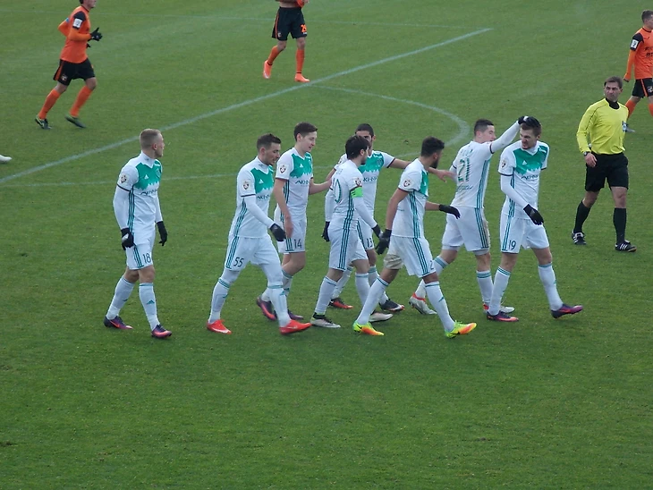 Свисток на перерыв. Ставпец и Лунгу смотрят, как Арапов отдает пять запасному голкиперу Тимофееву.