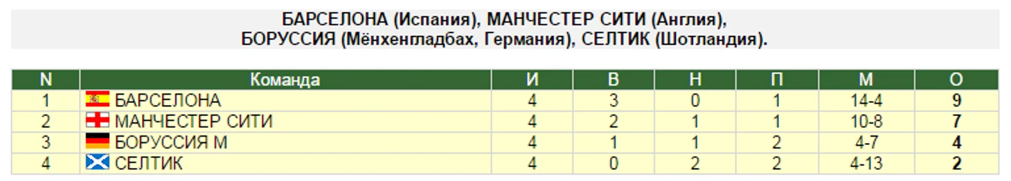 Для справки: в следующем туре «Боруссия» примет «Манчестер Сити», а затем отправится в Барселону, у «Селтика» программа выглядит ровно наоборот.
