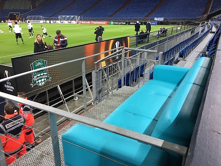 Это почетное место на стадионе «Шальке-04» — для болельщиков, которые выигрывают в специальном конкурсе и получают право смотреть футбол в таком комфорте.