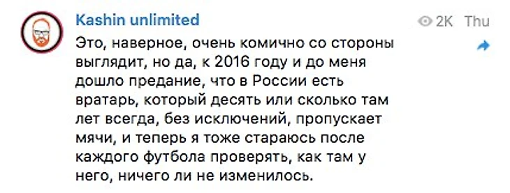 Так что, господа моралфаги, не надо устраивать вой и лишать наш футбол одного из немногих поводов для радости. Во-первых, это бесполезно; во-вторых, эо бессмысленно. Кержаков как-то пережил историю с попаданием в мемы, Акинфеев тоже переживет. А если у него тонкая душевная организация, пусть играет в своем дворе, а Лига чемпионов к этому равнодушна.