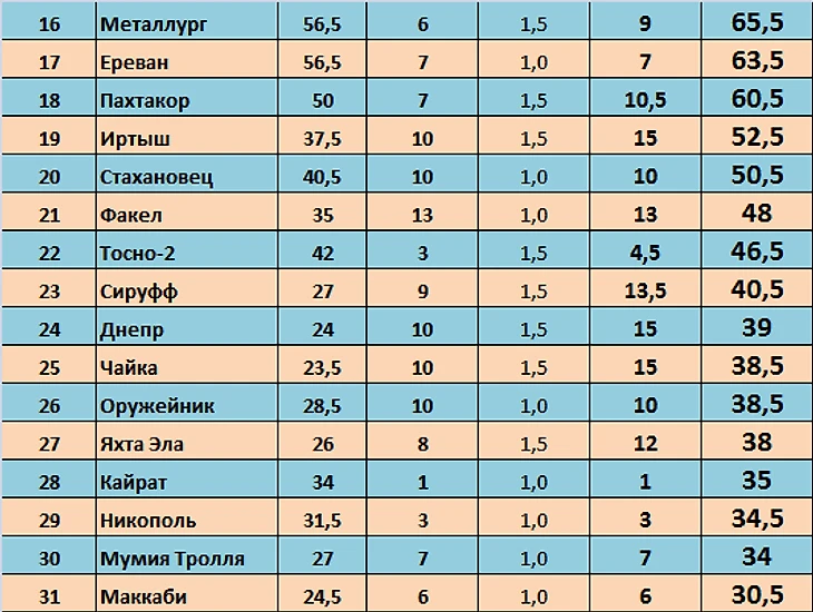 Тамбов, Пахтакор и Селенга дружно набрали по 7 баллов. Дружно и вылетели с ними...
