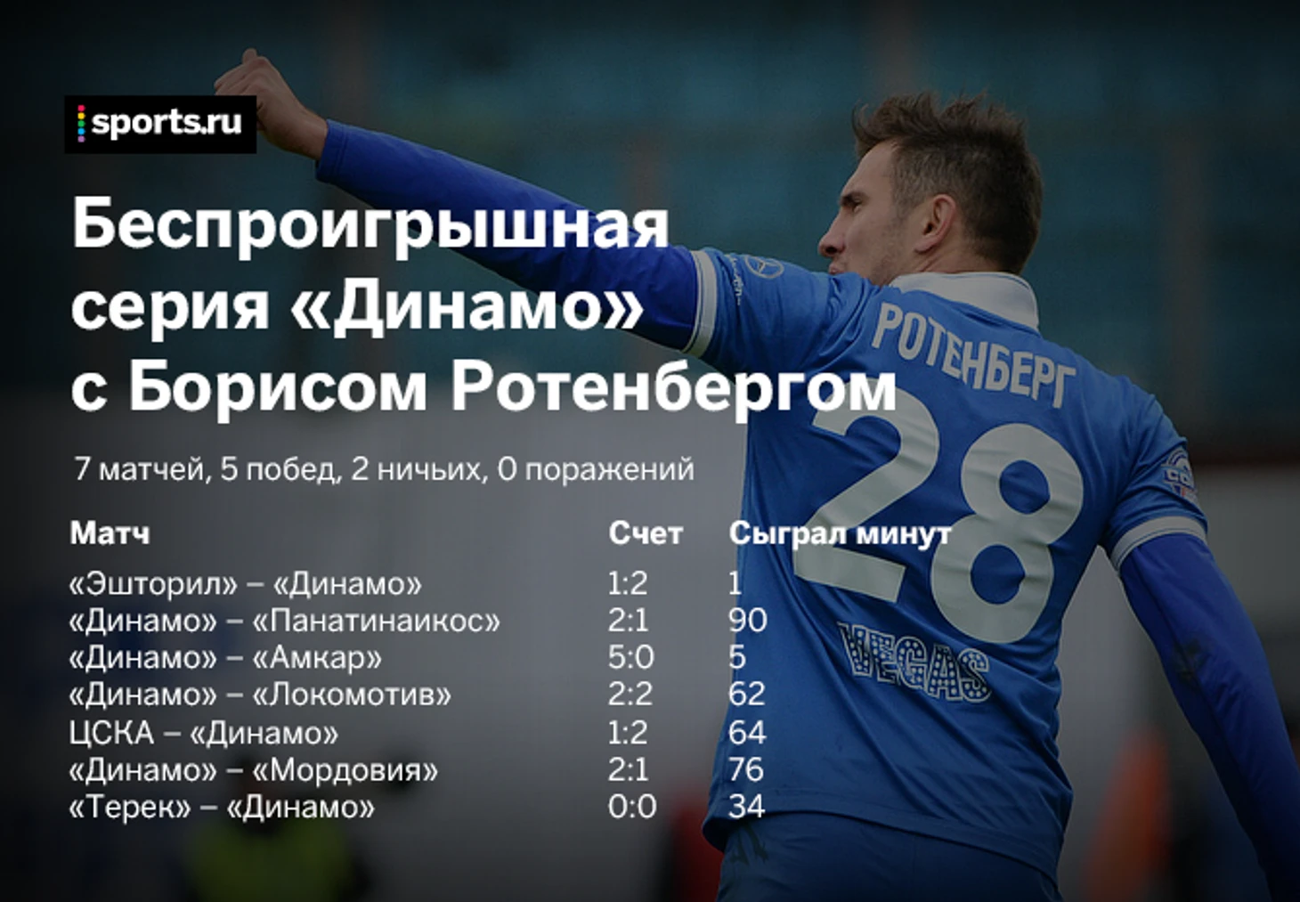 При этом когда Ротенберг был на поле, «Динамо» долго не проигрывало.