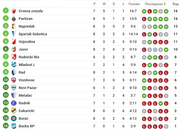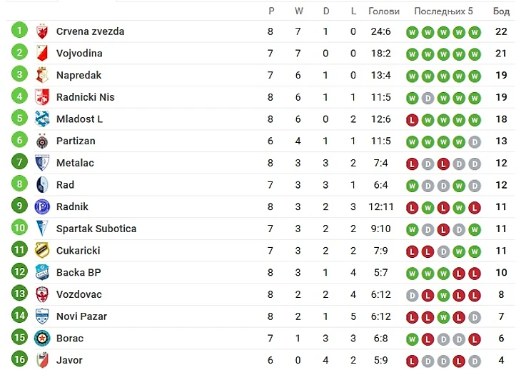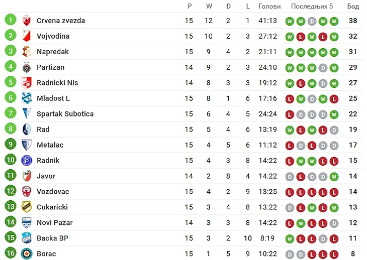 Суперлига Сербии: итоги первого круга
