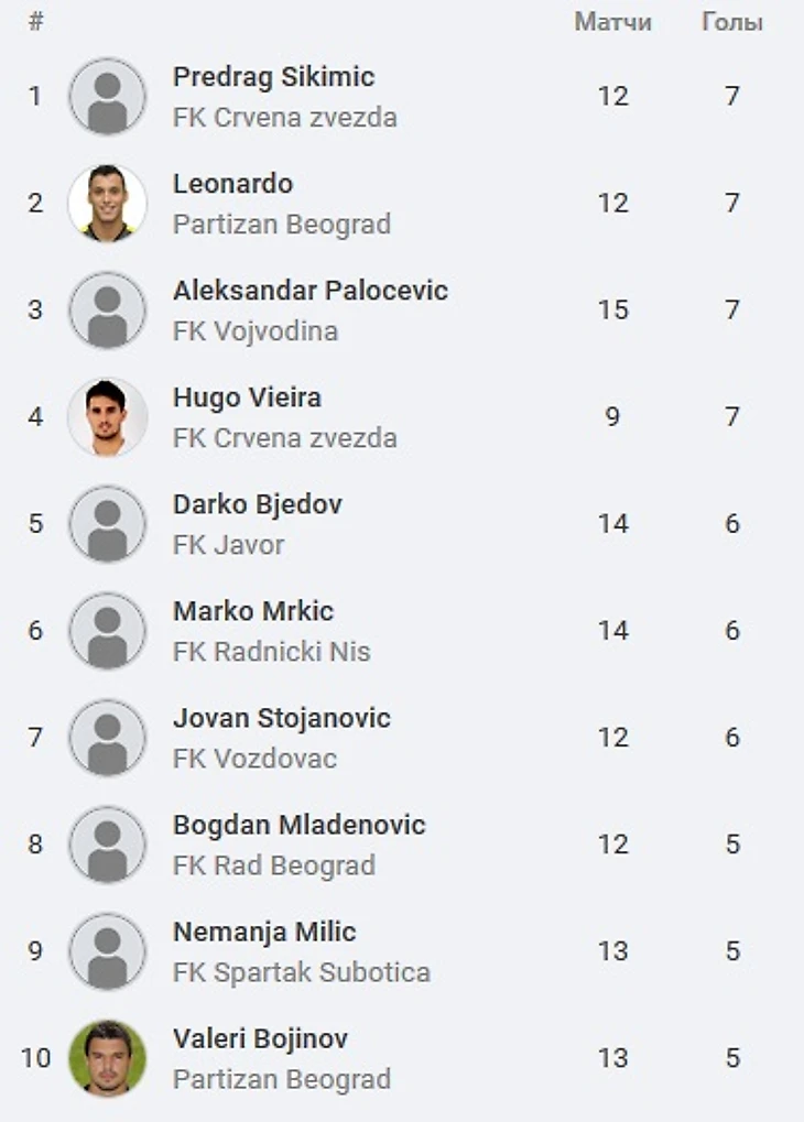 В списках Лучших Бомбардиров Супер Лиги сразу два футболиста "Звезды" претендуют на награду. Впрочем, тут паритет - Сикимичу и Вийера, тандем составляют Леонардо из "Партизана" и Палочевич из "Войводины":