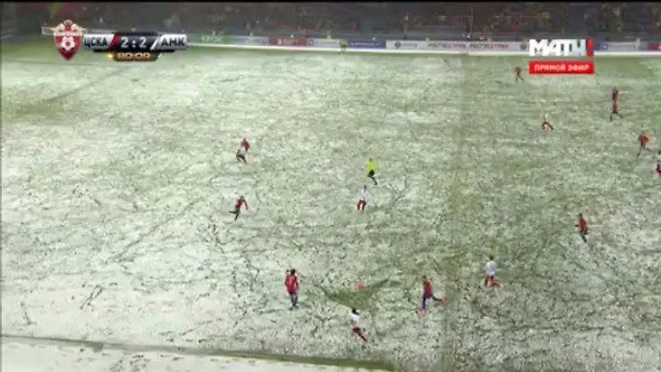 В Брянске тренер курского "Авангарда" умело замаскировал свою команду под снег. Неудивительно, что его команда одержала гостевую победу. Кстати, играли белым мячом. По трансляции его можно было и не найти.