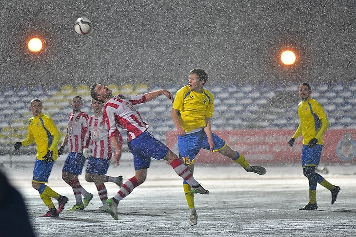 Игрок ивановского "Текстильщика" Павел Сергеев после красивого дальнего удара побежал к пустой трибуне отпраздновать гол поближе к горе снега. Впрочем, таких картин в эти выходные было достаточно.
