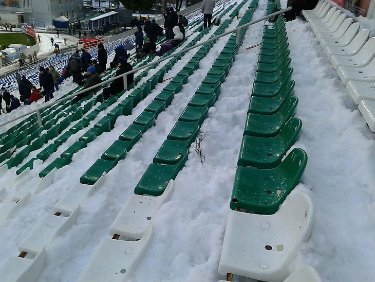 В Самаре c полем был полный порядок, работники стадиона все расчистили, а вот на трибунах было уже грустно.